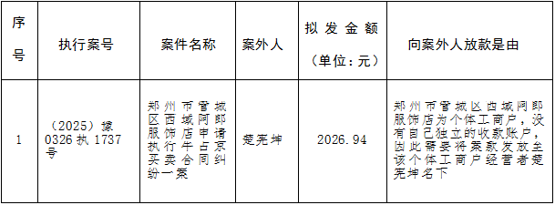 为进一步规范执行案款收发、管理,完善执行案款管理工作,维护当事人合法权益,防患廉政风险,现将河南省汝阳县人民法院拟向案外人发放的金额公示如下: