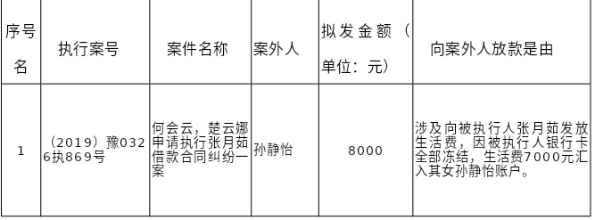 为进一步规范执行案款收发、管理,完善执行案款管理工作,维护当事人合法权益,防患廉政风险,现将河南省汝阳县人民法院拟向案外人发放的金额公示如下: