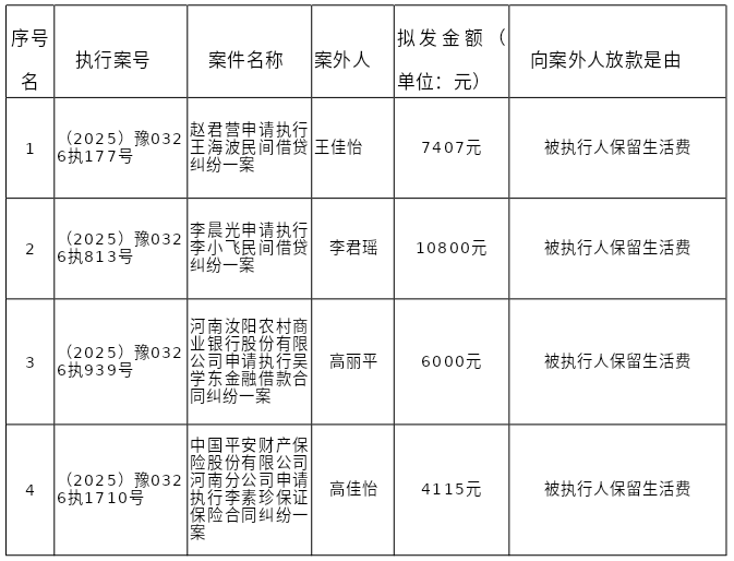 汝阳县人民法院关于向案外人发放案款案件的公示
