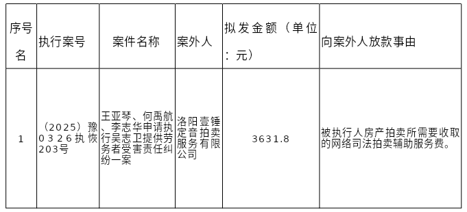 汝阳县人民法院关于向案外人发放案款案件的公示