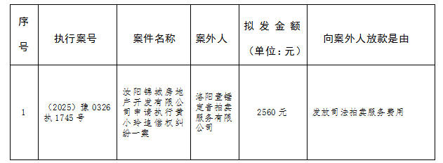 特别提示:公示期满3个自然日后,如无当事人提出异议,则该案款将向案外人发放,监督电话:0379-63157915。 河南省汝阳县人民法院执行局 2026年2月25日