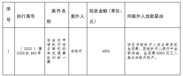 为进一步规范执行案款收发、管理,完善执行案款管理工作,维护当事人合法权益,防患廉政风险,现将河南省汝阳县人民法院拟向案外人发放的金额公示如下: