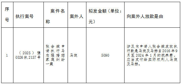 特别提示:公示期满3个自然日后,如无当事人提出异议,则该案款将向案外人发放,监督电话:0379-63157915。 河南省汝阳县人民法院执行局 2026年4月7日