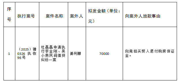 特别提示:公示期满3个自然日后,如无当事人提出异议,则该案款将向案外人发放,监督电话:0379-63157915。 河南省汝阳县人民法院执行局 2026年4月7日