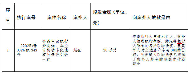 特别提示:公示期满3个自然日后,如无当事人提出异议,则该案款将向案外人发放,监督电话:0379-63157915。 河南省汝阳县人民法院执行局 2026年4月15日